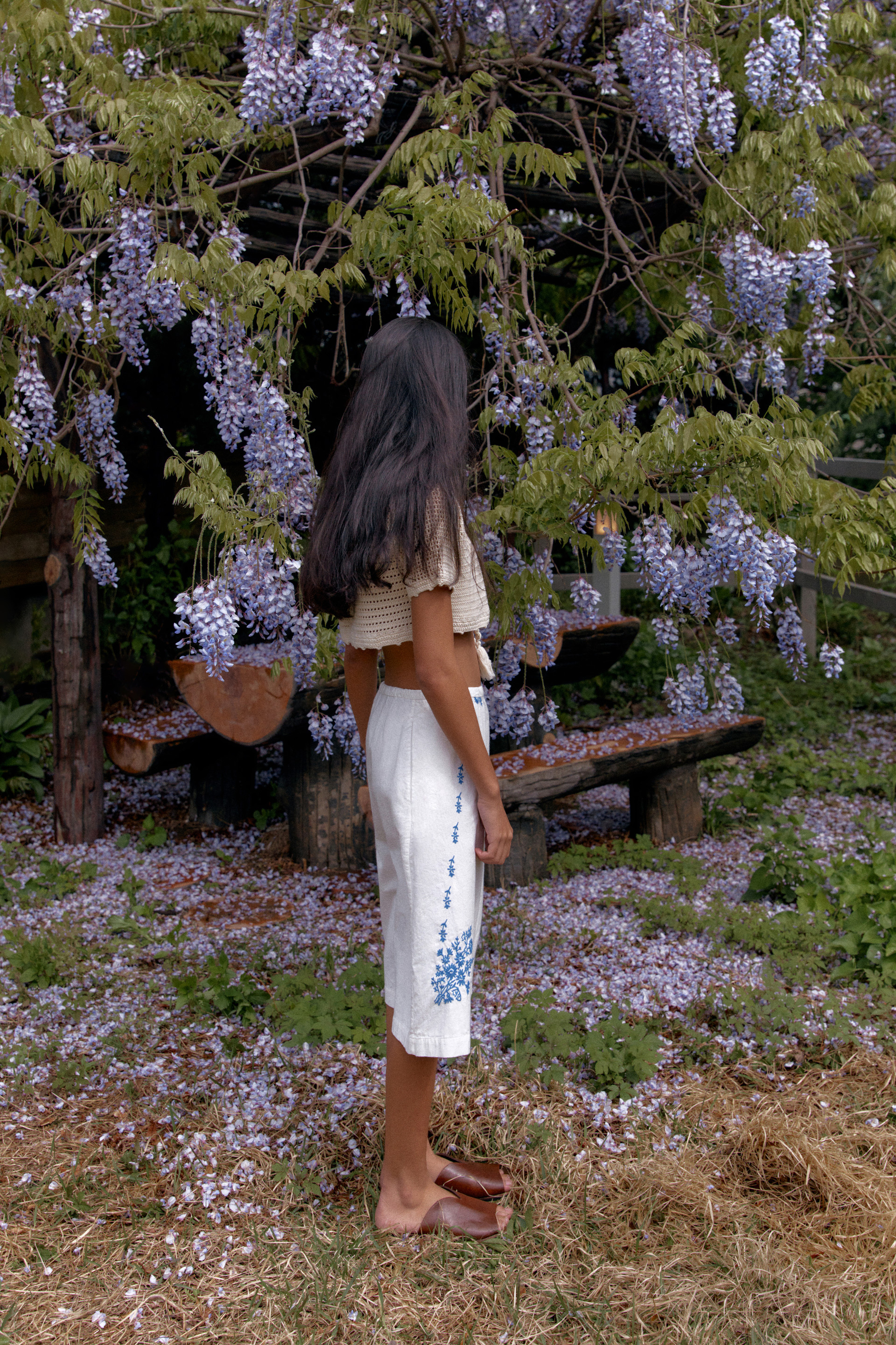 Blue flower strap skirt
