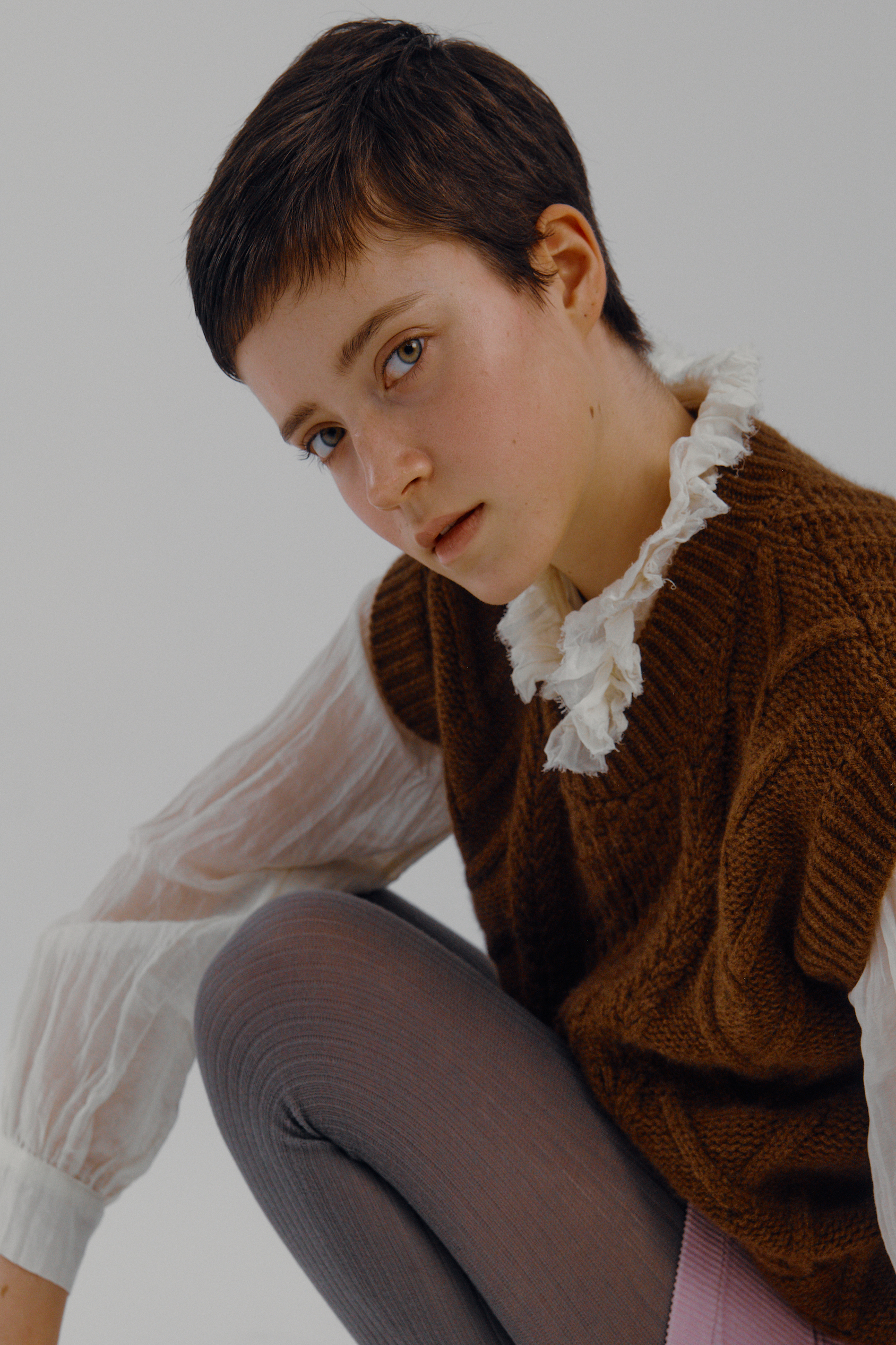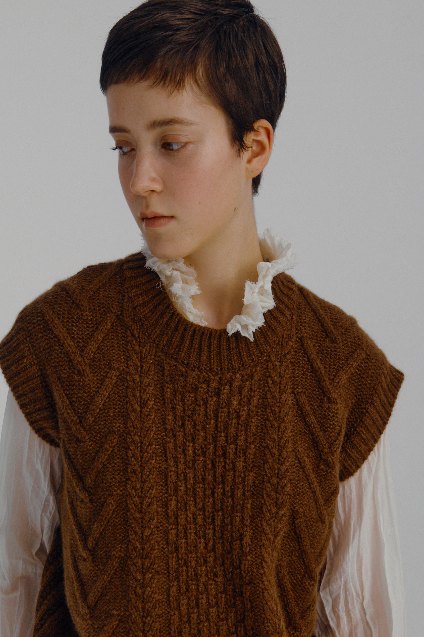 Cashmere cable vest (Brown)